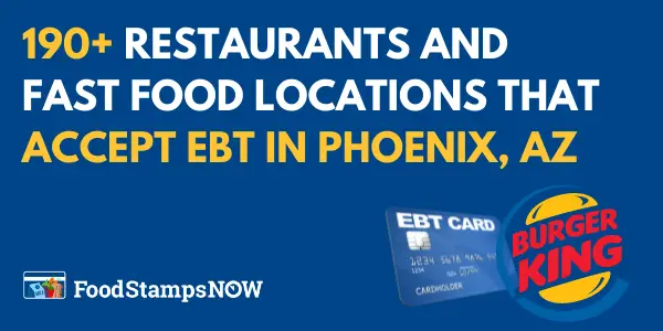 Currently, there are 192 fast food chains and restaurants that accept EBT in Phoenix through the Arizona Restaurant Meals Program.