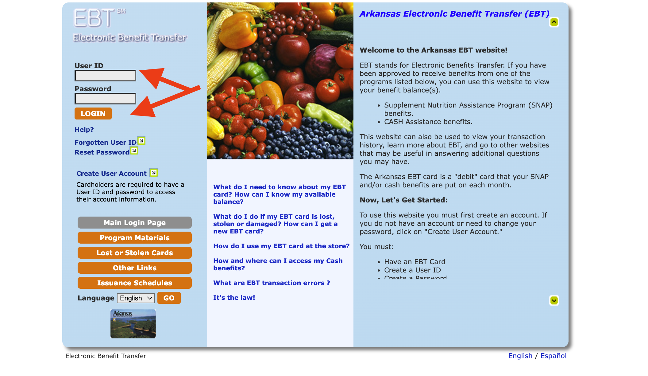 Once you are there, enter your User ID and Password. You must log in to your account to check your EBT balance.