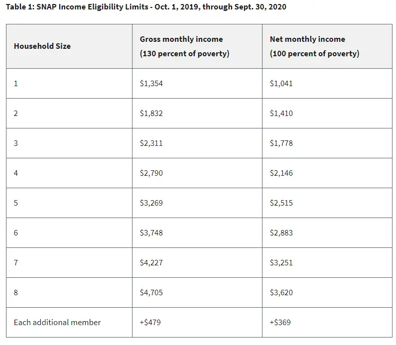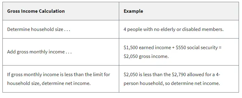 The gross and net income limits for 2020 are listed below. As you will see, they are based on number of people living in your household.