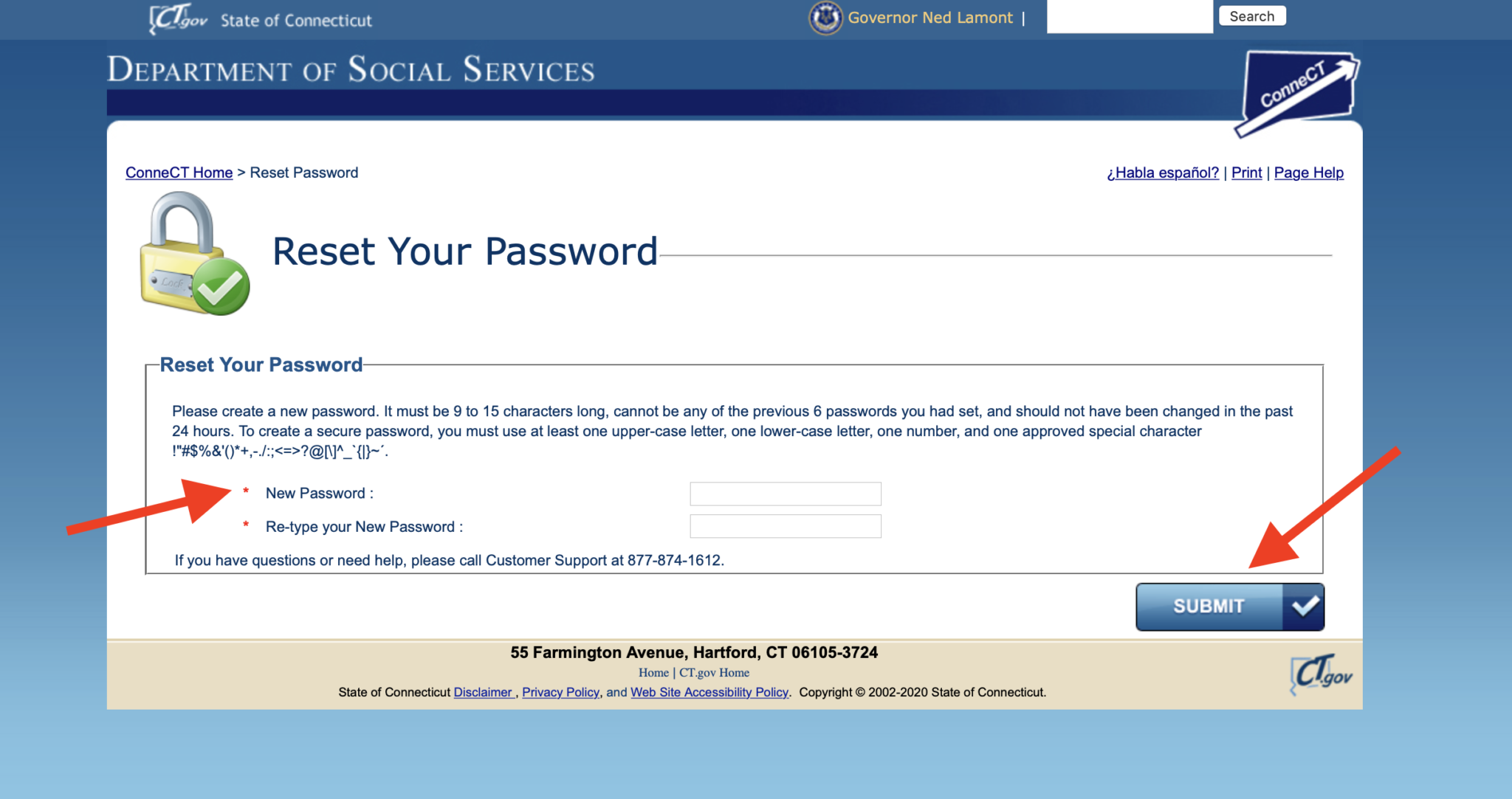 Congratulations! You have now successfully reset your Connect CT Gov password. Use this information to login to your CT Connect online account and access your benefits.