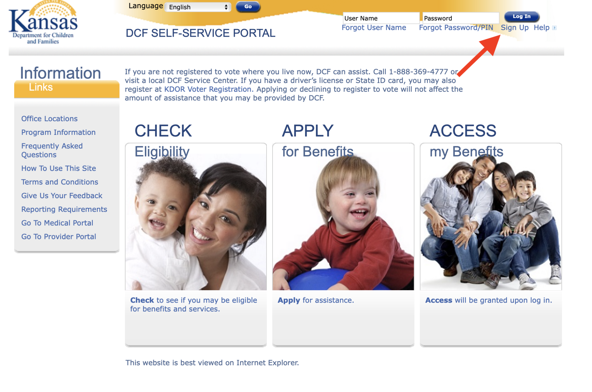 1. Visit the Kansas DCF Self-Service Portal Website