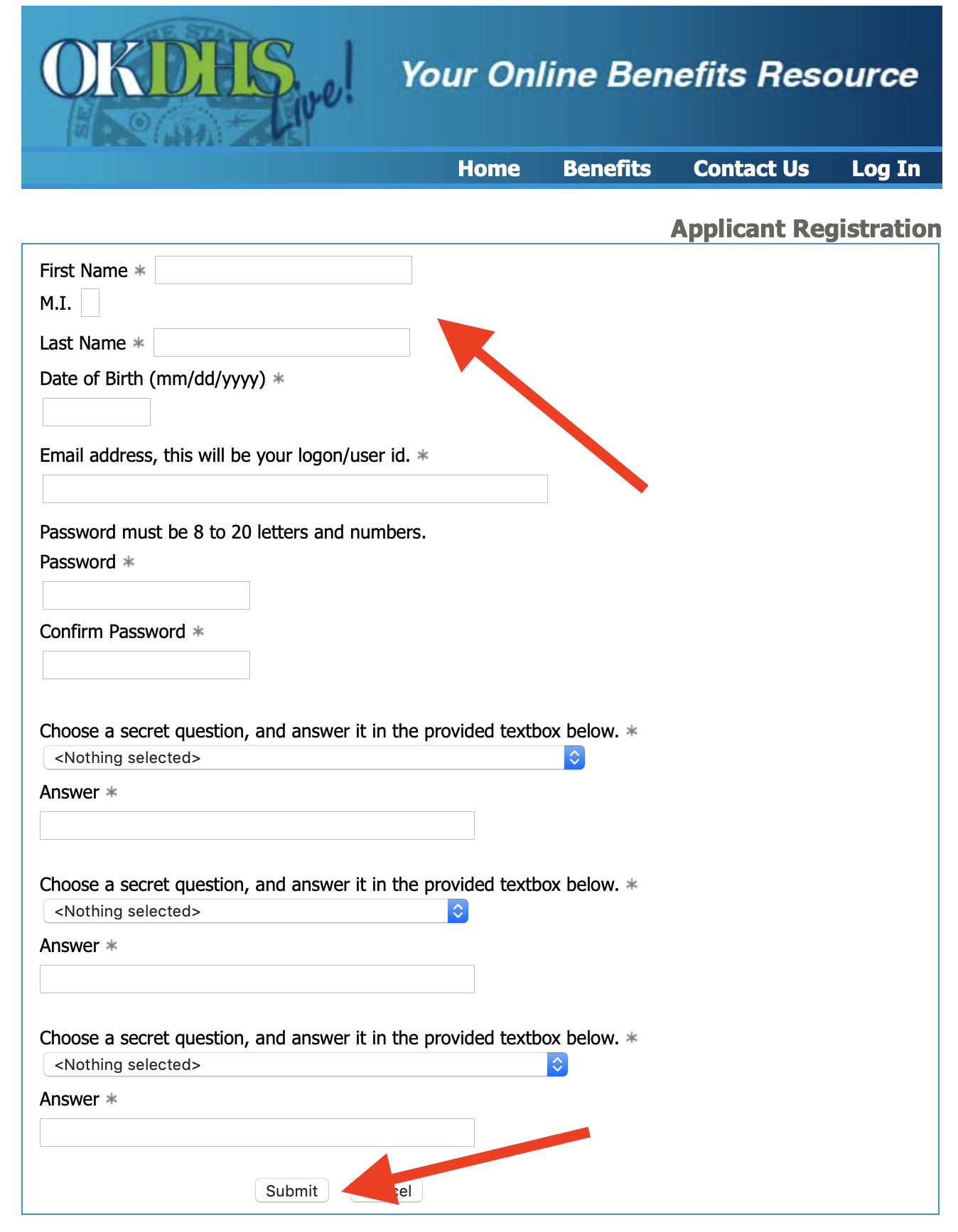 Once complete, click the “Submit” button and login your OK DHS Live account. You can now proceed to apply, access, update, change, or renew your Oklahoma benefits.