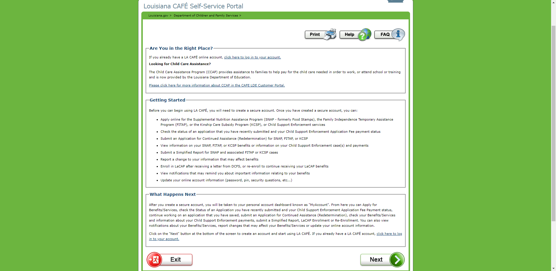 To find out how to create your Louisiana LA CAFE online account to apply or manage your benefits, continue reading below.