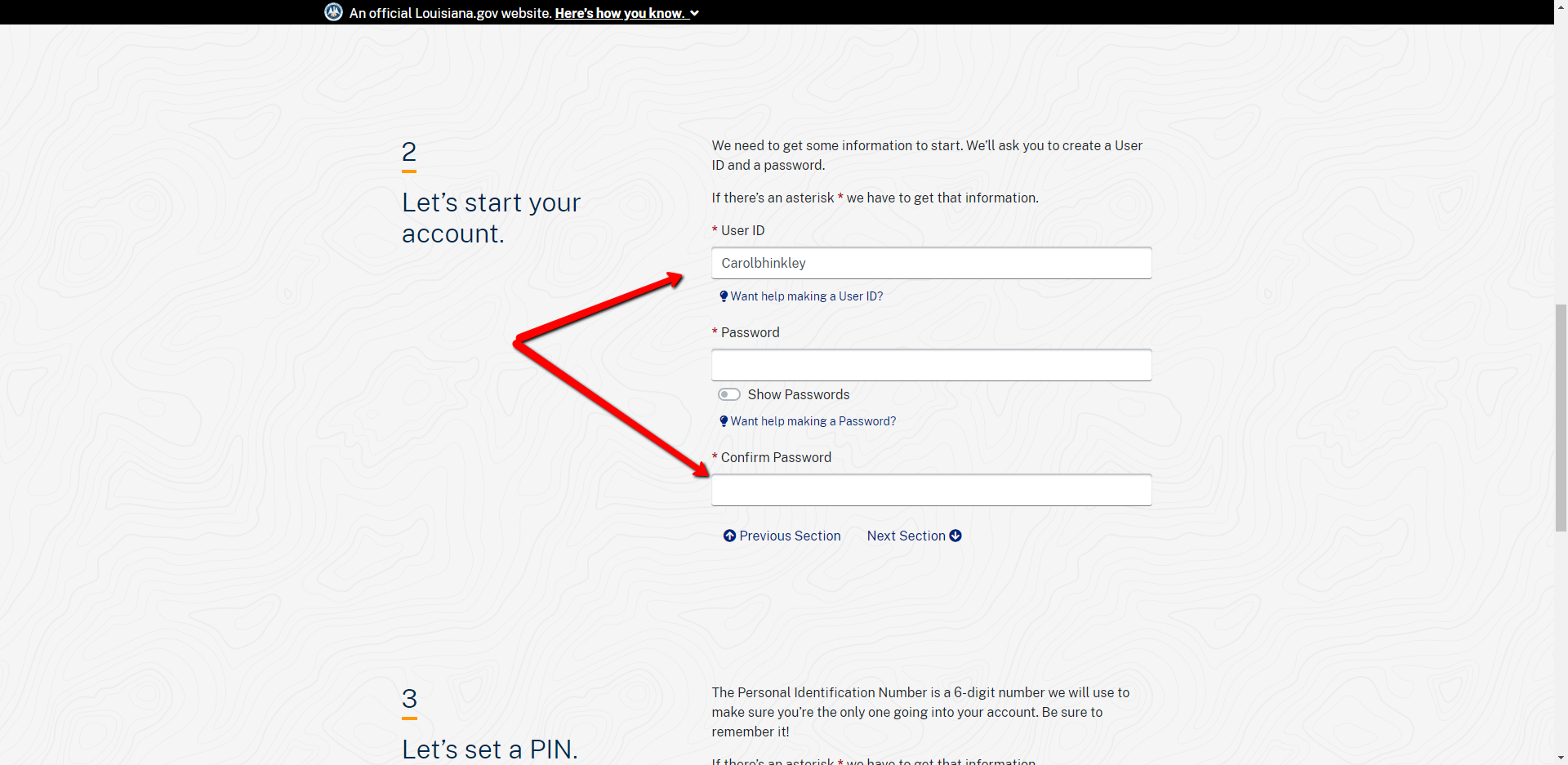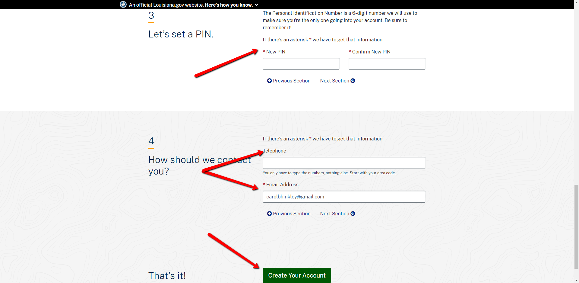 For help completing your My.La.gov account, please use the screenshots provided below.
