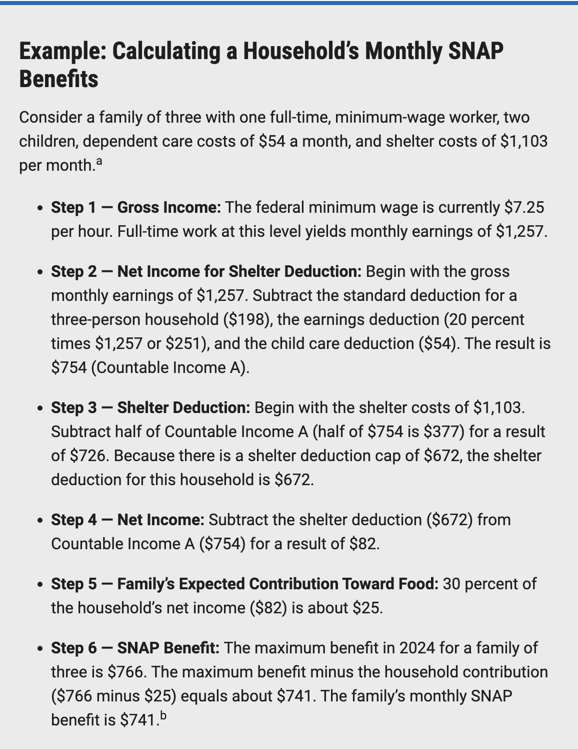 This example from the Center on Budget and Policy Priorities (CBPP) will show you how much a family of three is expected to receive.