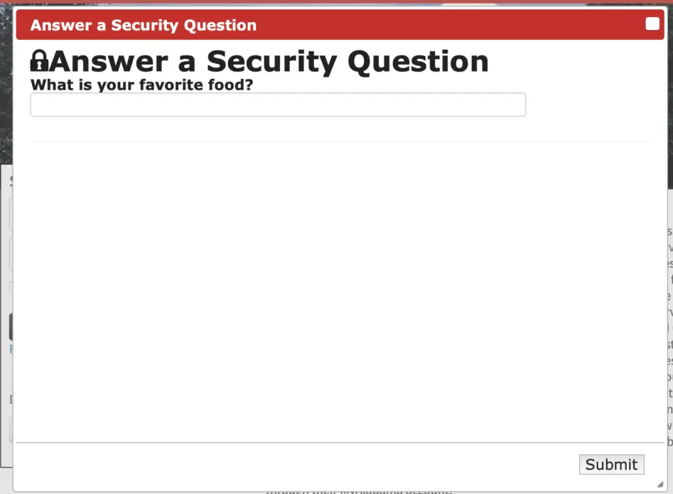 Once you have entered the correct email, you should receive a message that asks you to answer a security question. These are questions you set up when you created your MyAlabama.gov Account. For help, please refer to the screenshot below.