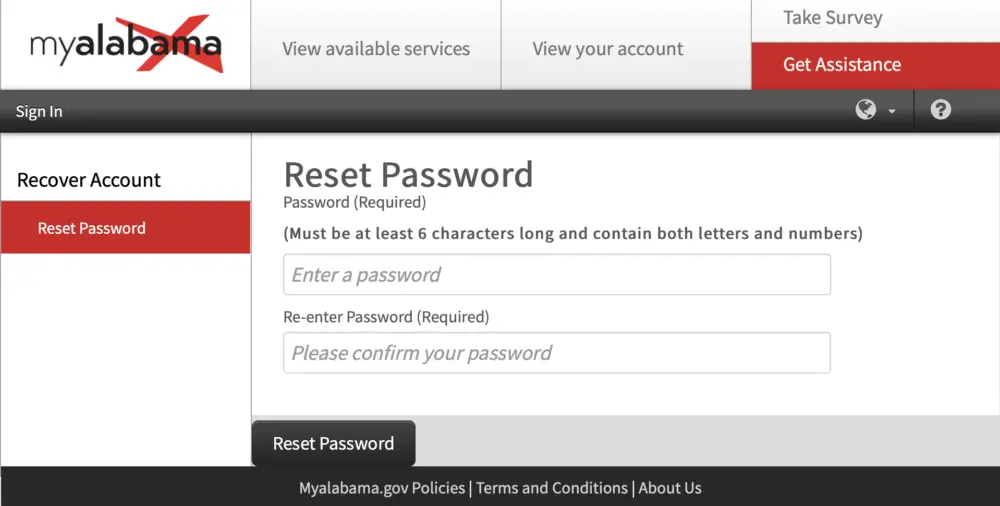 If you still cannot login to your account because you have forgotten your MyAlabama.gov Password, we can help you create a new password. For help resetting your Password, continue reading below.