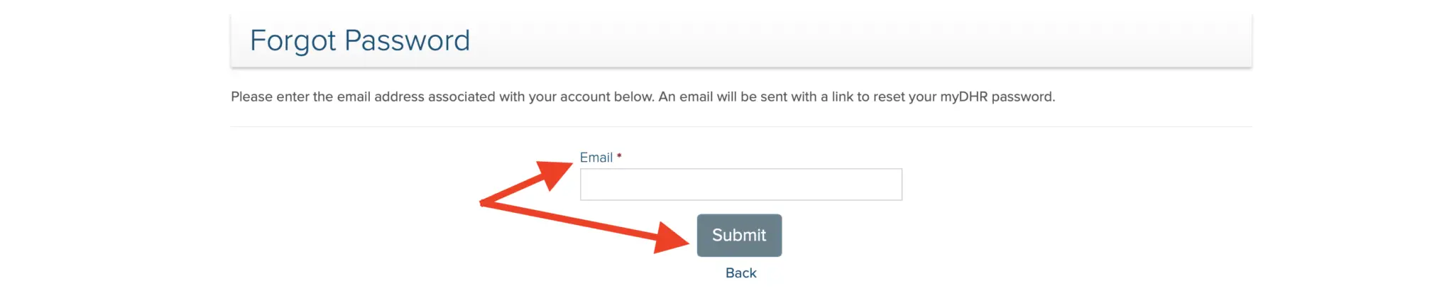 How to Reset MD DHR Password with Email Address