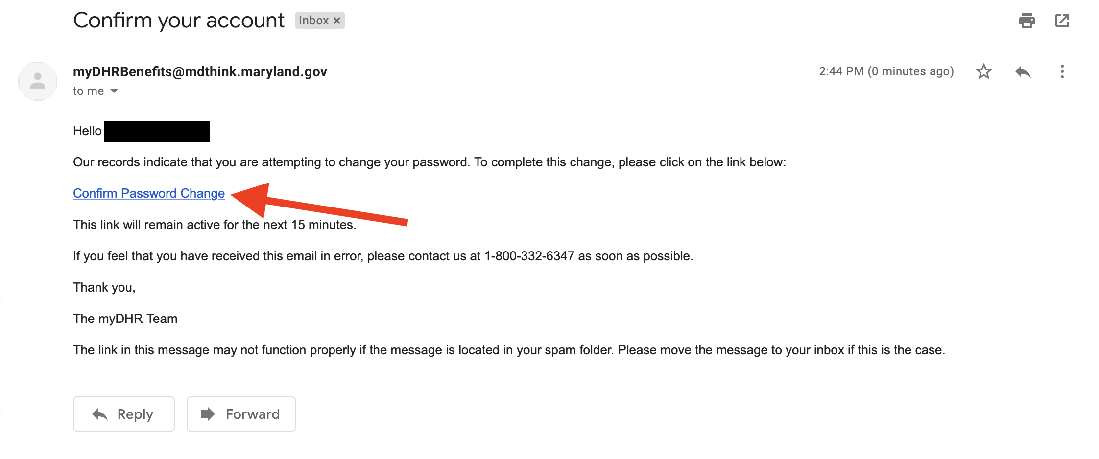 To reset and update your password using your email, a request will be submitted and sent to your email address on file. Proceed by logging in your email to access the link and reset your Maryland MyDHR password.