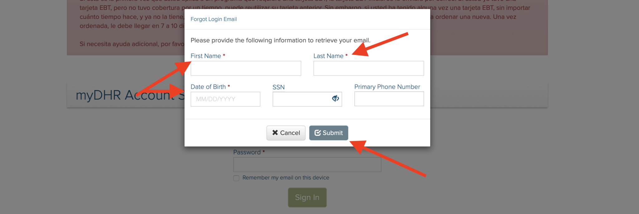 Forgot your MyDHR MD Email Address? Follow the instructions below for help with your MyDHR Benefits login information.